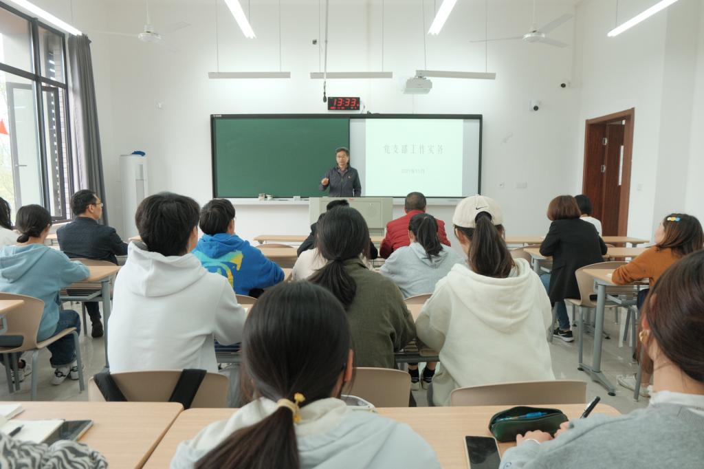 为进一步加强和改进新形势下基层党支部建设,提升基层党支部班子的政治素养和业务能力。11月4日下午,吃瓜网 院专门邀请校党委组织部原副部长姚颖超做党务知识专题培训,全院12个党支部的支部委员参与培训会。培训会由院党委书记邵燕主持。 姚颖超结合《中国共产党支部工作条例(试行)》《中国共产党普通高等学校基层组织工作条例》《中国共产党发展党员工作细则》《中国共产党党员教育管理工作条例》等文件要求,从党的基层组织、党的组织生活两方面,重点以党支部组织生活制度为主线,详细地解读了会议制度、党课制度、党日制度、民主生活制度、民主评议党员制度等。他结合实际工作介绍了党支部开展活动的具体形式和要求,针对在党员发展和党支部换届选举等基层党建工作中普遍存在的一些问题,姚颖超逐一分析,并提出了相应的建议对策。 邵燕在培训总结中表示,此次培训会是学院党支部集中换届后开展的专项培训教育活动。她要求全体支委会成员要提高政治站位,进一步全面学习掌握党务知识,强化党性意识和担当意识,规范党内组织生活,扎实推进“三会一课”,努力成为党务专家,以全面提升自身政治、业务能力协同推进层支部全面建设,真正实现“一个支部一个堡垒”的作用,以高质量的支部建设推动学院党建总体水平再上新台阶。