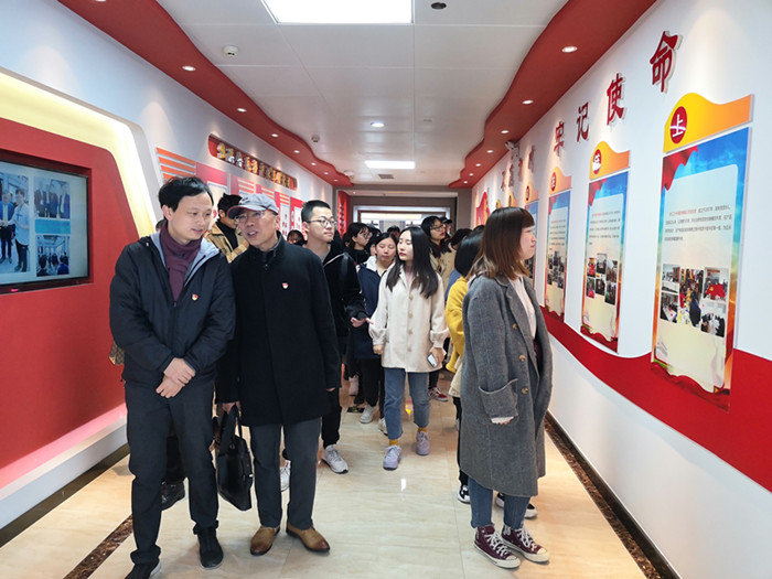 师生此行先前往洪合镇毛衫市场党支部进行学习交流。由该党支部同志带领我校师生参观了毛衫文化博物馆、市场党建长廊和网红直播中心,通过专人讲解、历史资料阅览、宣传片观看等多种方式介绍了洪合毛衫市场历史蜕变之路和当前运营情况,也学习到了他们经营与党建相结合的优秀理念。随后师生来到洪合镇文化公园,参观了纪念碑、洪合城市客厅和青年学习社,了解和学习以王洪合为代表的一大批先进党员通过“坚守初心,以血肉担当使命”的方式,打造新型特色党建工作的“洪合品牌”。