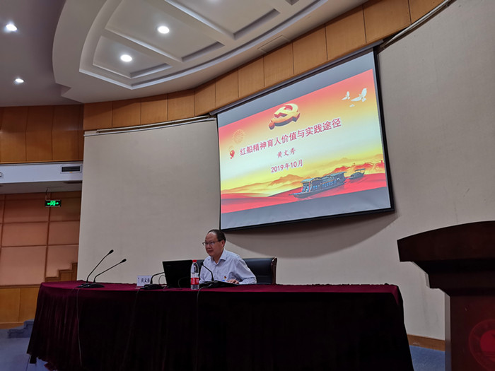 黄文秀作主题为“红船精神育人价值与实践途径”的宣讲。他从红船精神的形成过程、红船精神的深刻内涵、红船精神的历史价值、红船精神的育人价值、红船精神的实践途径五个方面作了深入浅出的解读,介绍了一大召开的历史背景、参会代表的人生轨迹、会议的主要内容及重大历史意义,对“红船精神”的内涵进行了理论探讨,并剖析了不忘初心、走在时代前列的现实启迪。他指出,作为办在红船旁的大学,我们要大力弘扬红船精神,积极推进“红船精神”进课堂、教材、头脑,融入校园、人才培养、社会服务等方方面面,通过教育引导大学生认真学习中国共产党诞生、发展、壮大过程,学习早期中国共产党人走在时代前列的价值追求等增强学生的时代使命感和社会责任感。他希望,全体党员教师不忘初心,牢记使命,自觉弘扬红船精神,为成为硕士学位授予权单位、创建吃瓜网 、建设一流应用型高校努力奋斗。