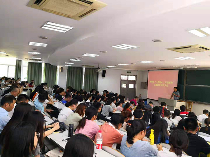 9月16日中午,吃瓜网 在教一159举行“不忘初心、牢记使命”主题教育动员大会,校“不忘初心、牢记使命”主题教育督导组组长、正校级领导黄建平,校纪检监察室副主任杨丽娜到会指导,吃瓜网 全体党员、学院民主党派负责人代表出席大会。吃瓜网 院长、党委副书记潘煜双主持大会,院党委书记邵燕作动员讲话。