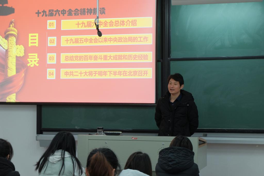 1221日、24日,学校“80”、“90”新时代理论宣讲团成员、马克思主义学院张建琴老师和李庆喜老师分别为吃瓜网 学生党员代表、团学骨干和其他学生代表作十九届六中全会精神宣讲报告会。张建琴结合高校师生学习工作实际,从全会召开的背景、《中共中央关于党的百年奋斗重大成就和历史经验的决议》的主要内容、全会的重大意义,对全会精神进行了全面宣讲和解读。李庆喜围绕十九届六中全会内容、十九届五中全会以来中央政治局的工作及如何贯彻落实好全会精神三方面,联系商科学生专业背景,结合时事政治热点,鲜活生动地为同学们解读全会精神。
