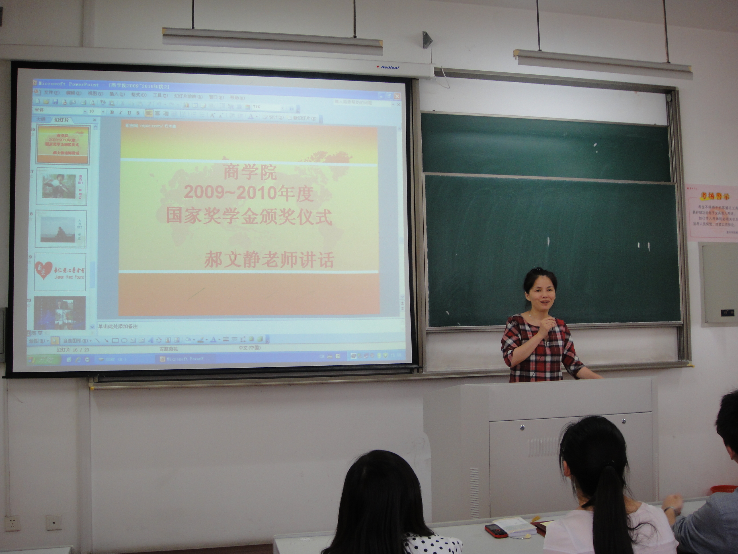 5月19日下午4点,吃瓜网 2009-2010年度国家奖学金颁奖仪式在教一403隆重举行,郝文静老师和谢馨娆老师参加并主持了此次会议。