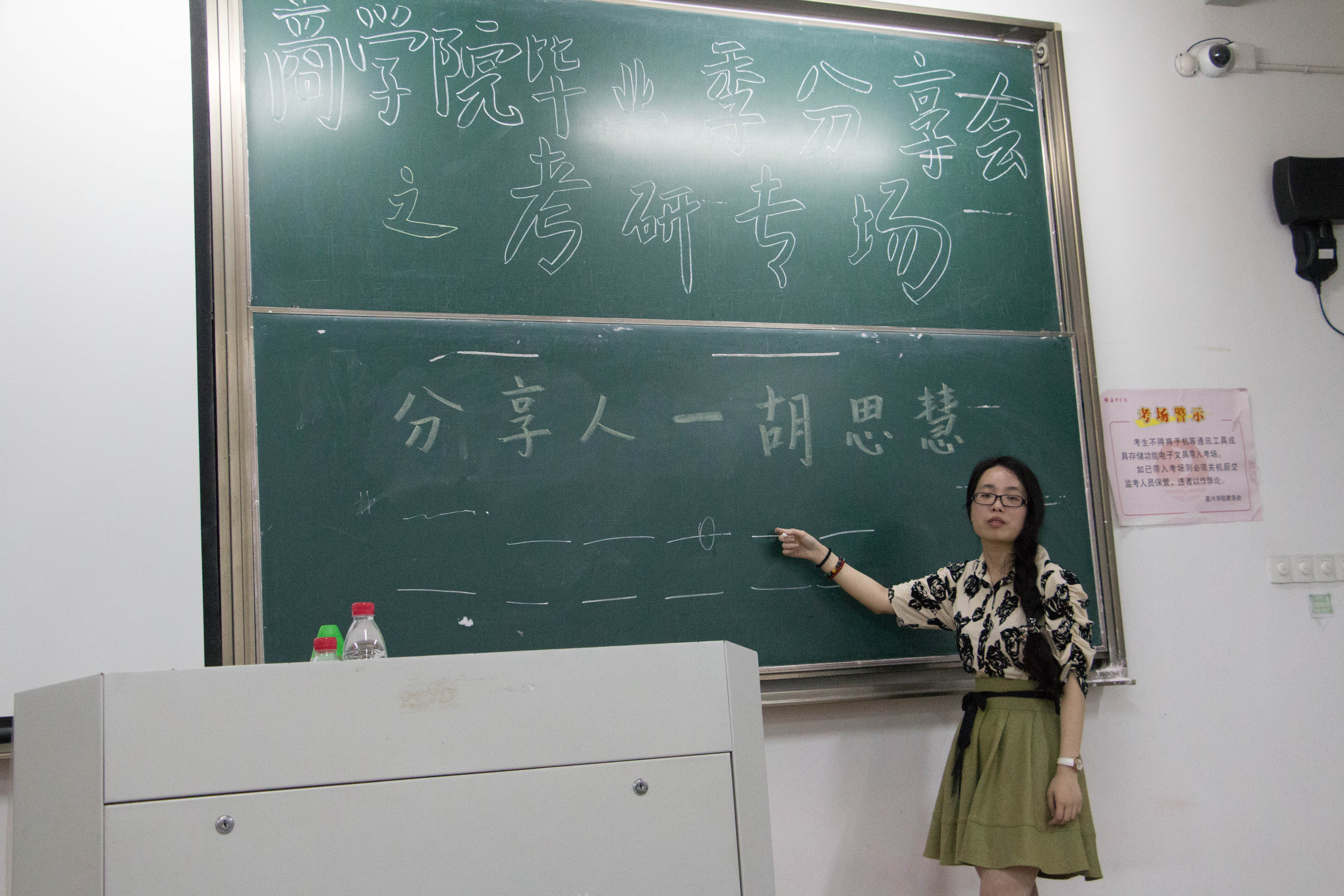 考研专场中,胡思慧通过“要保持坚持和乐观的态度”、“如何选择专业和地区”、“复习时间的安排问题”、“参加复试的经历”等方面和大家分享了她考上华东政法大学的经验与感悟。公务员专场中,薛利玲不仅与大家分享了了自己报考公务员的经历还向大家推荐了一些备考公务员的资料。首场分享会在同学们的互动提问环节中告一段落。