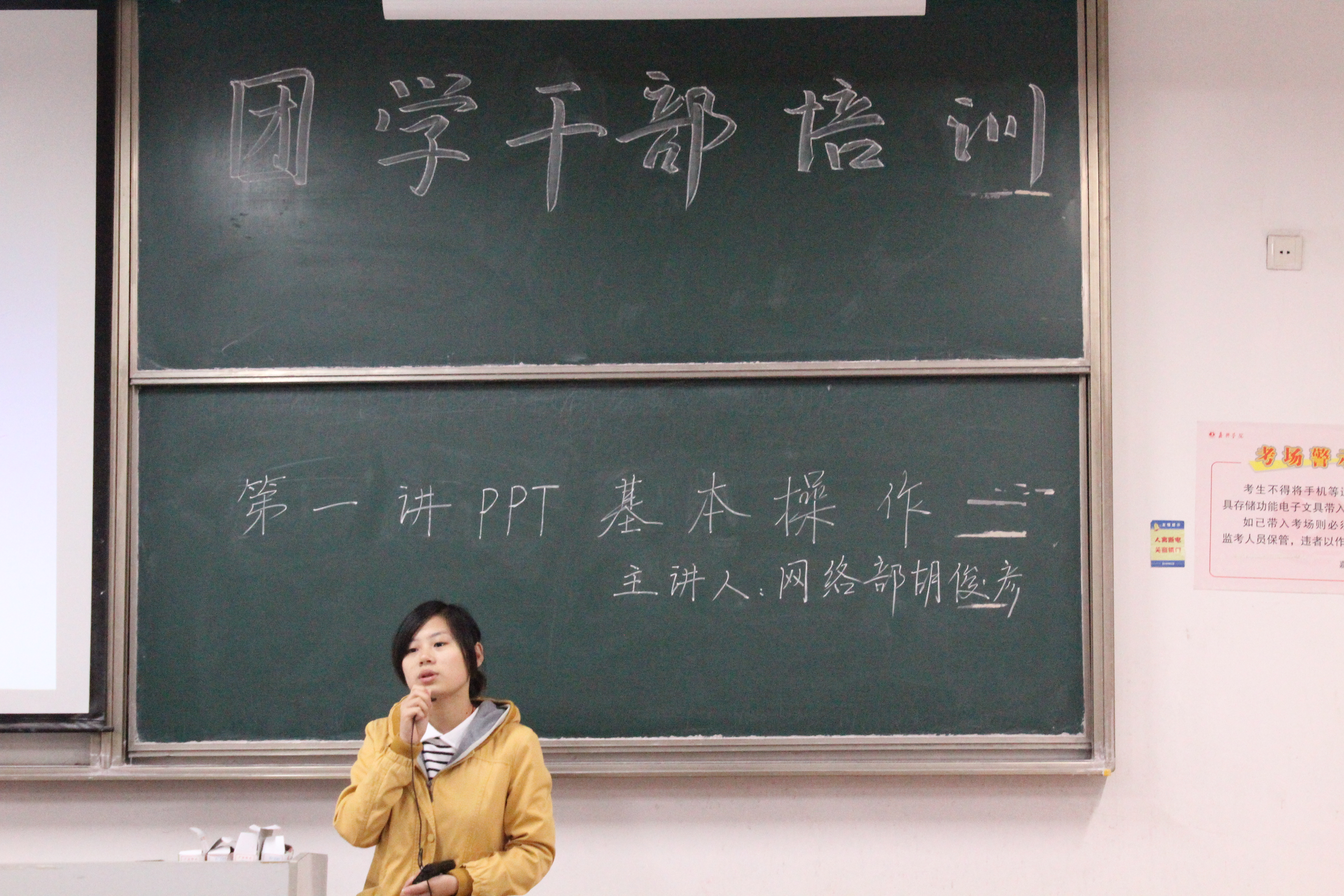 2014年11月8日晚,团学干部培训第一讲在教一135开讲。本次培训由网络部干事胡俊彦同学主讲,主要内容是PPT制作的基本操作。