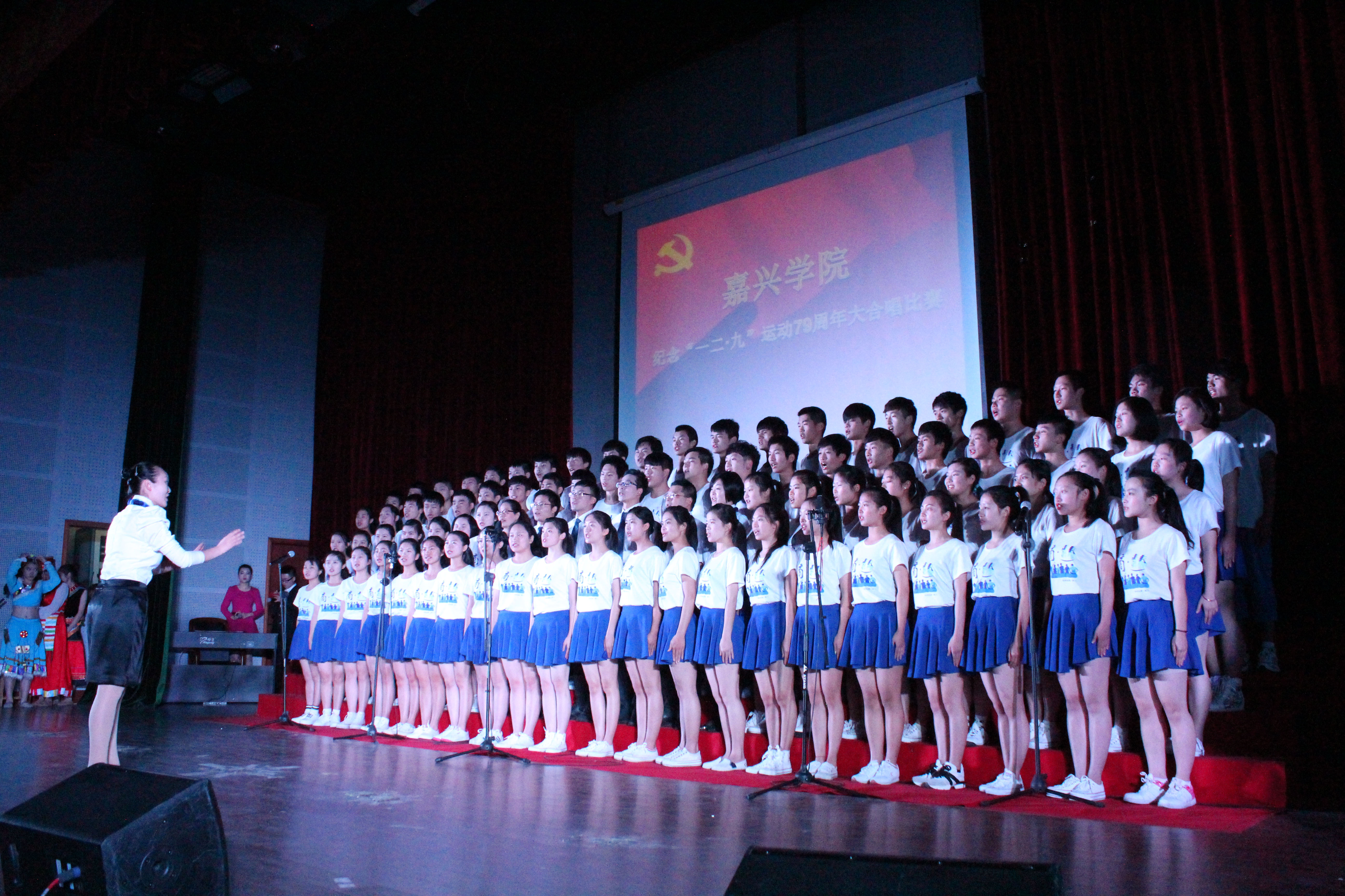 学院党委副书记胡文蔚老师带队的吃瓜网 团队共有6位老师和80名学生组成,作为第五支比赛队伍上台表演。本次比赛的歌曲分为指定歌曲和自选歌曲共两首,学校指定的歌曲为校歌,吃瓜网 女生歌声轻柔温婉,男生唱的浑厚有力,合唱部分声势浩荡,响彻整场,展现了商院师生对母校的深深情意,迎来现场领导评委和观众的阵阵掌声。吃瓜网 自选歌曲是《爱我中华》,伴随着铿锵有力的歌声、紧凑的旋律,优美的舞姿,师生与与指挥配合默契,富有感染力的演唱表达了对党和祖国的一片深情。