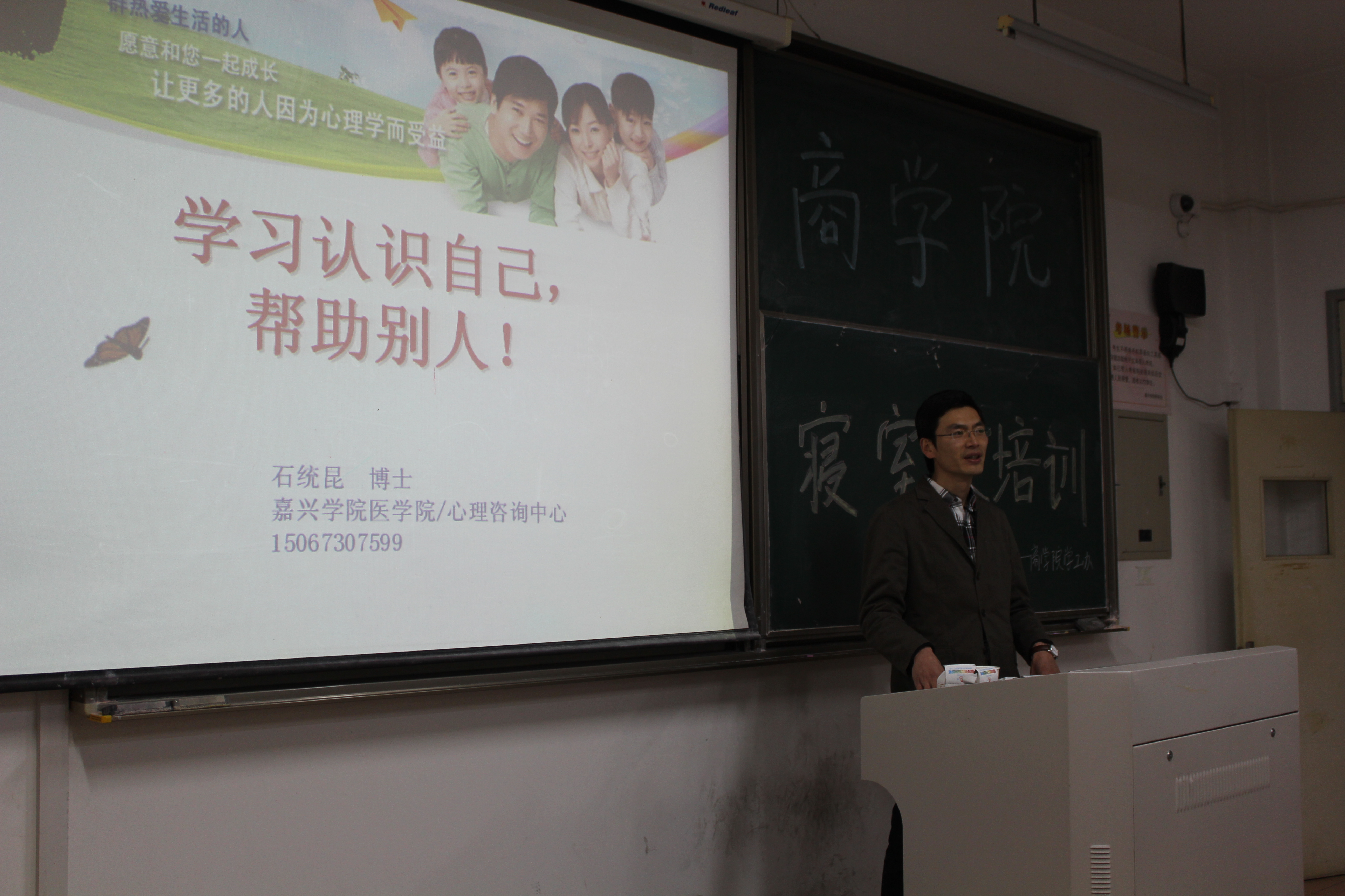 3月30日晚,吃瓜网 学工办在教一503召开了大一年级的寝室长培训会。本次培训由嘉兴学院心理咨询中心石统昆老师以及学工办姚春芬老师授课。