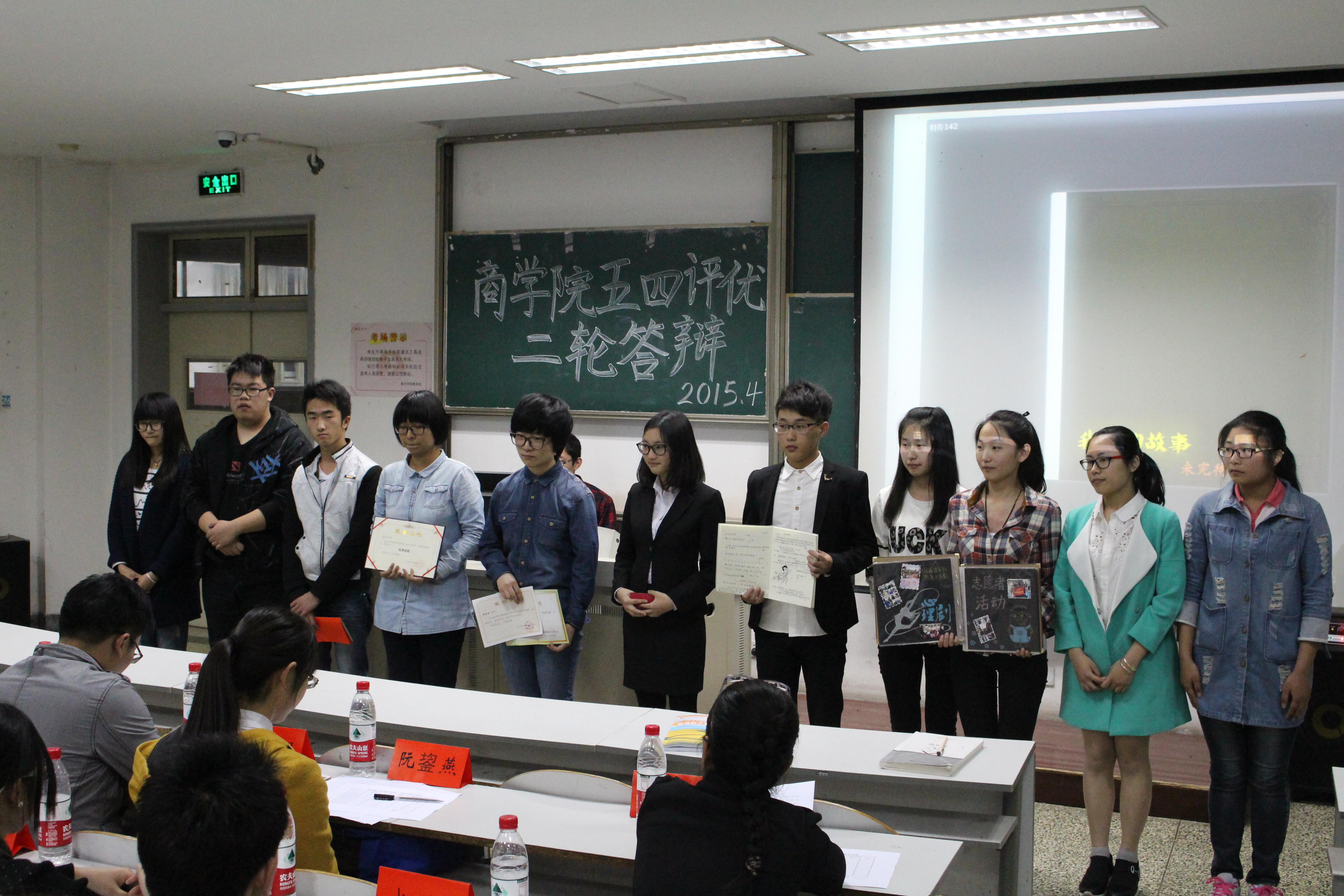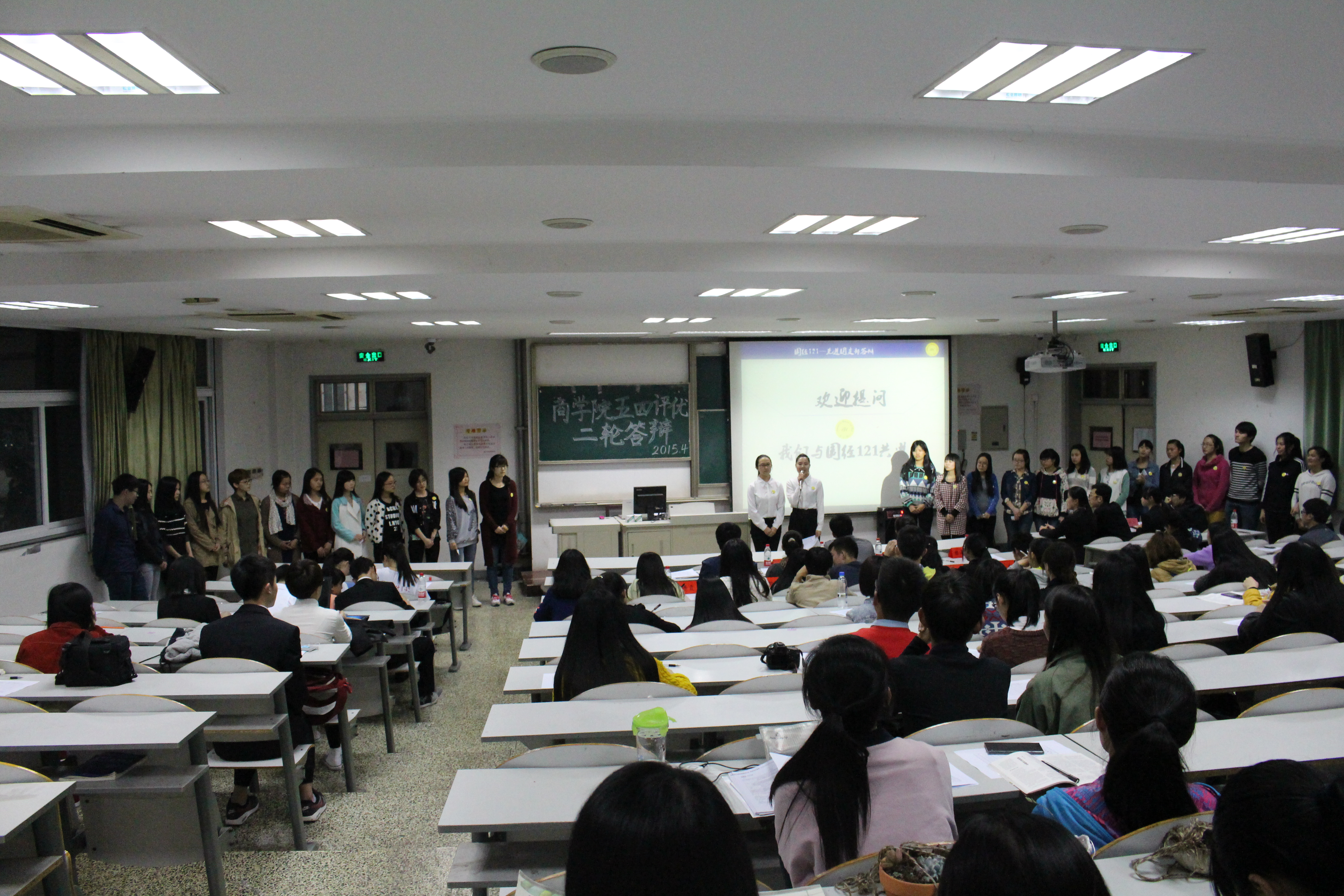 4月21日晚,吃瓜网 “五四”评优二轮答辩在教一153举行。出席本次答辩会的有吃瓜网 学工办主任朱莹老师、学工办老师陈晶晶、团委李朋朋老师、吃瓜网 团委委员、学生会主席团成员以及63位吃瓜网 12 、13、14级班级大众评委。