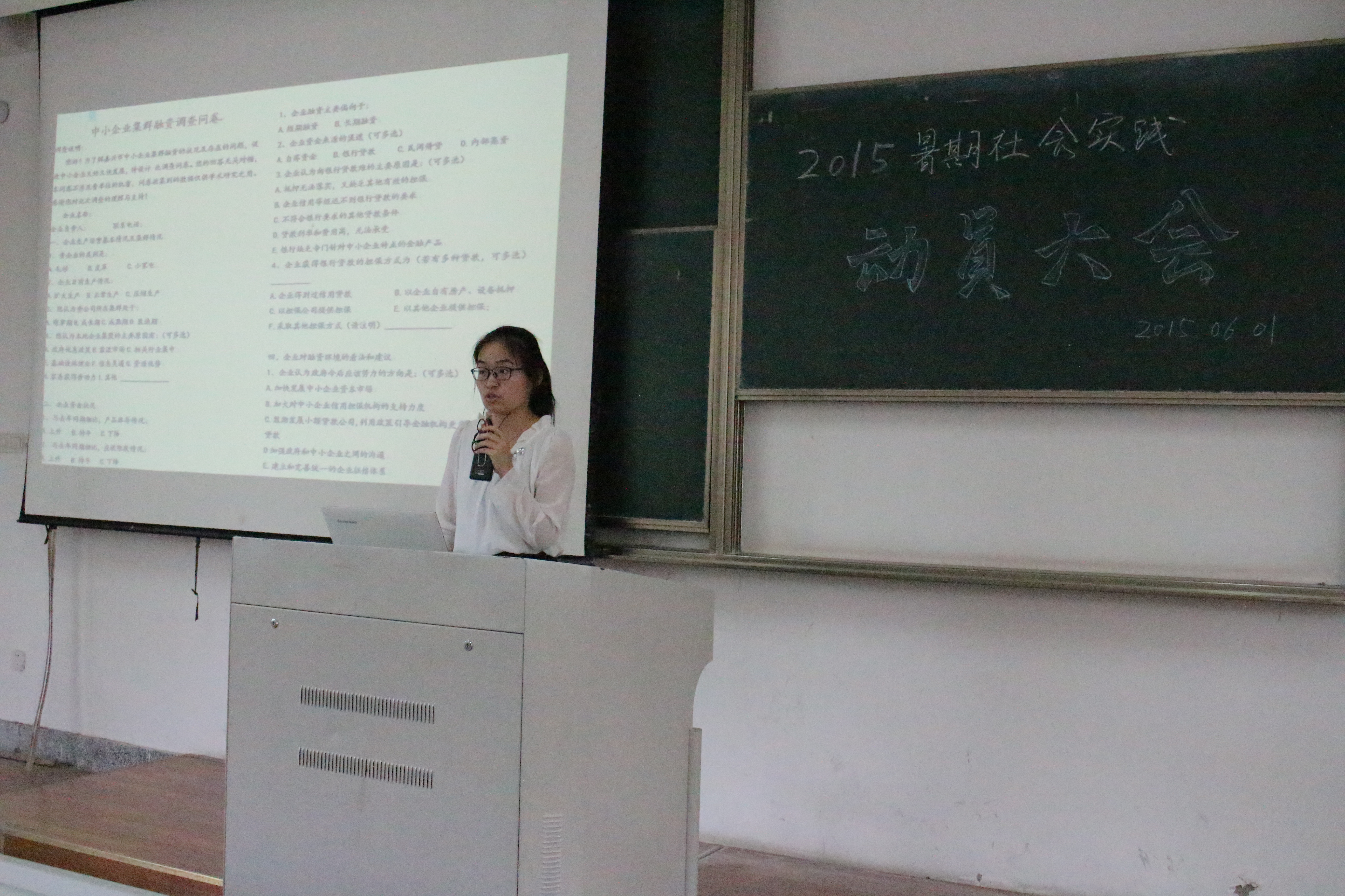 6月1日中午12:30在教二A222,院团委组织部开展了学生组织暑期社会实践的动员大会,学院团委副书记阮鋆燕同学、学生会主席团、学院社团负责人以及学生会全体14级成员参加了本次大会。