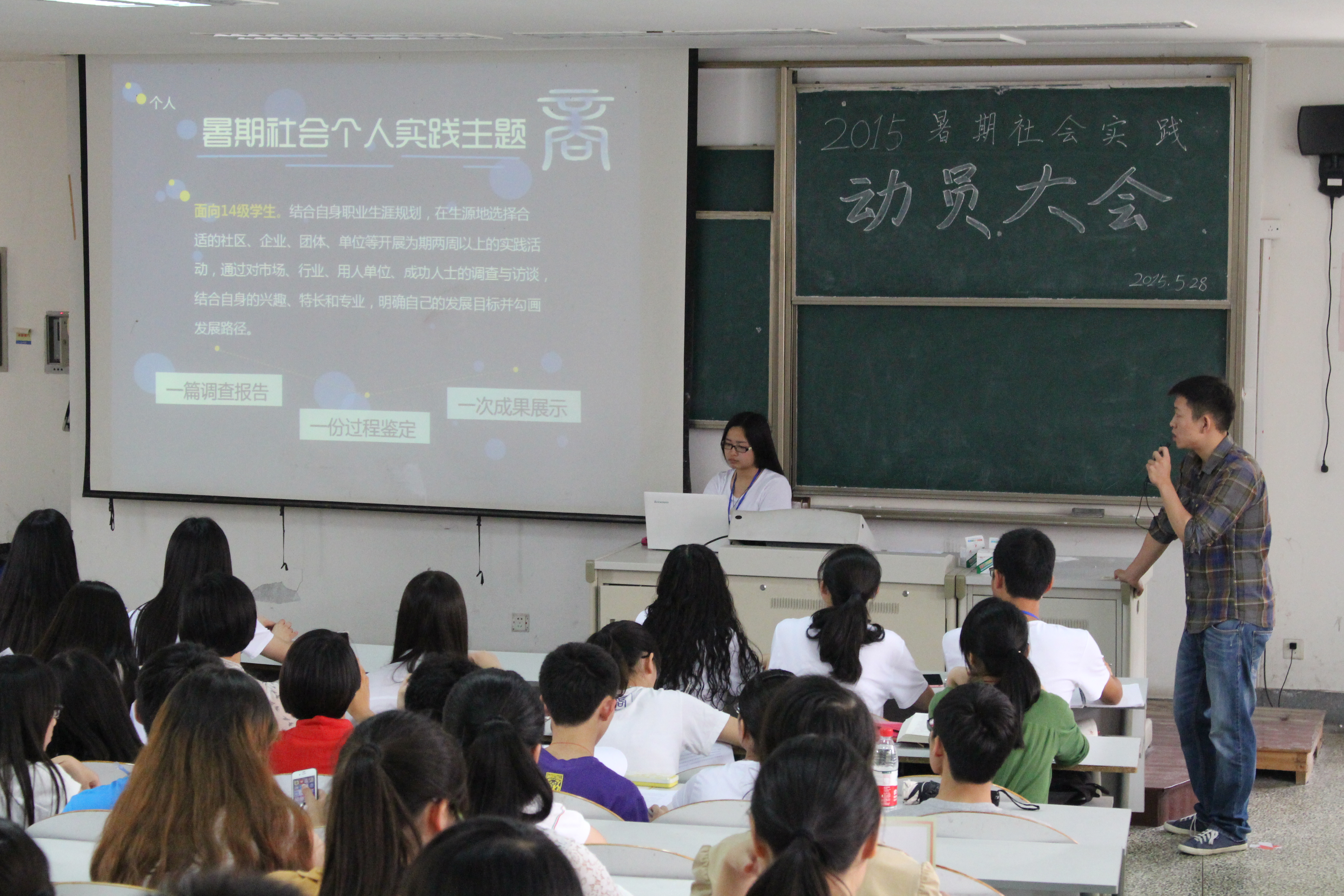 5月28日中午,吃瓜网 在教一259举行了2015年暑期社会实践动员大会。会议由团委办公室主任刘俊同学主持,吃瓜网 团委书记潘欣老师、团学成员、班团支书和部分实践意向同学参加了会议。