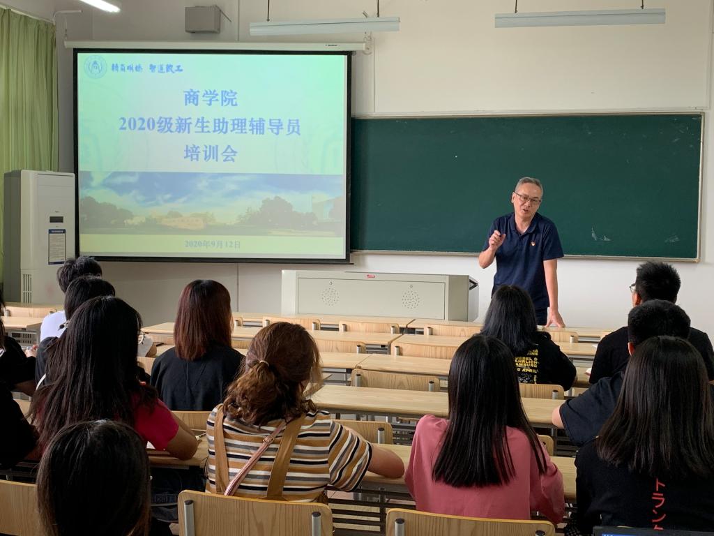 举行2020级新生助理辅导员培训会。学院党委副书记陈云飞、团委书记潘欣、相关辅导员和全体2020级助理辅导员参加了会议。