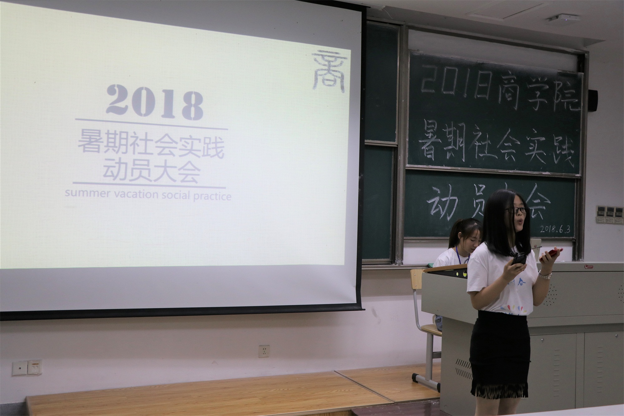 2018年“双百双进”活动暑期集中性社会实践活动动员大会在教一159举行。团委相关负责老师、团学主要学生骨干、学院2017级全体班长团支部参加了此次活动。