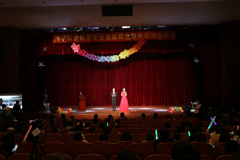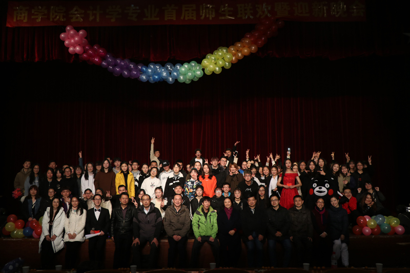 会计学专业首届师生联欢暨迎新晚会在越秀校区第二报告厅举行。学院院长潘煜双、党委副书记陈云飞和会计学专业全体师生欢聚一堂,共庆新年。
