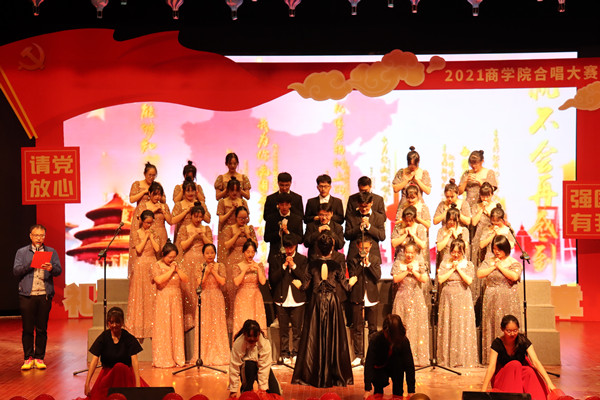 在梁林校区学生活动中心剧场举行“礼赞百年,歌唱新章”第二届新生校歌合唱大赛决赛。学院党委副书记潘欣、各专业辅导员、班主任、教师代表应邀参加活动。