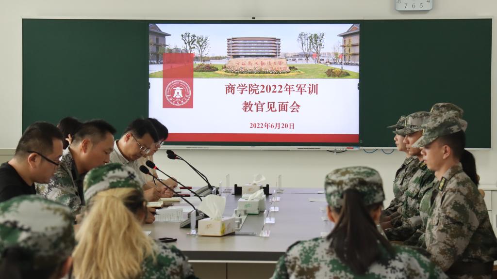 2021级学生军训教官见面会在尚德楼311会议室举行。学院党委副书记潘欣、三团十连连长华立昇,全体军训教官、指导员、辅导员和各排副排长、卫生员参加见面会。会议由学工办主任张啸峰主持。