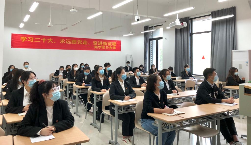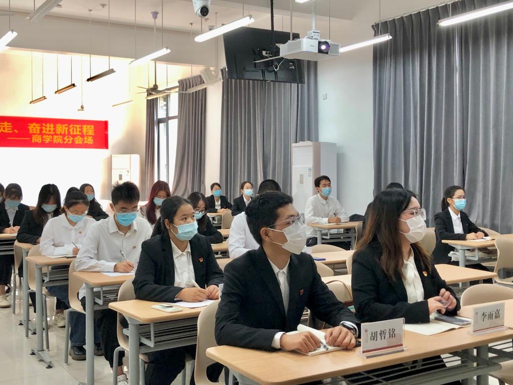 学院共设4个分会场组织学生观看大会。在分会场,听到报告中提到“青年强,则国家强。当代中国青年生逢其时,施展才干的舞台无比广阔,实现梦想的前景无比光明”时,在场的同学们备受鼓舞。学生骨干胡哲铭说:“作为一名中国革命红船起航地高校的新时代大学生,自豪和骄傲的同时,更感压力和责任。我必定以青年学子该有的责任担当,引领商院学子紧跟时代步伐,弘扬伟大建党精神,立志做有理想、敢担当、能吃苦、肯奋斗的新时代好青年,为谱写马克思主义中国化时代化新篇章,实现中华民族伟大复兴贡献青春力量!”