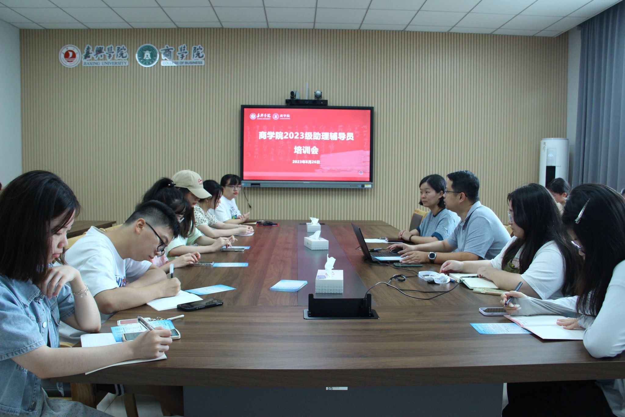 举行2023级新生助理辅导员培训会。学院党委副书记潘欣、相关辅导员和全体2023级助理辅导员参加会议。会议由学工办主任张啸峰主持。