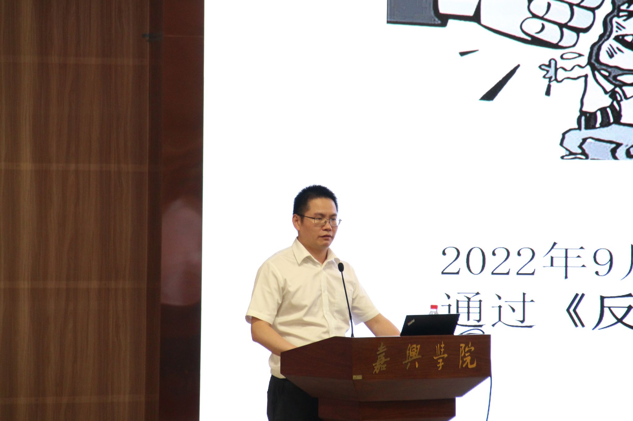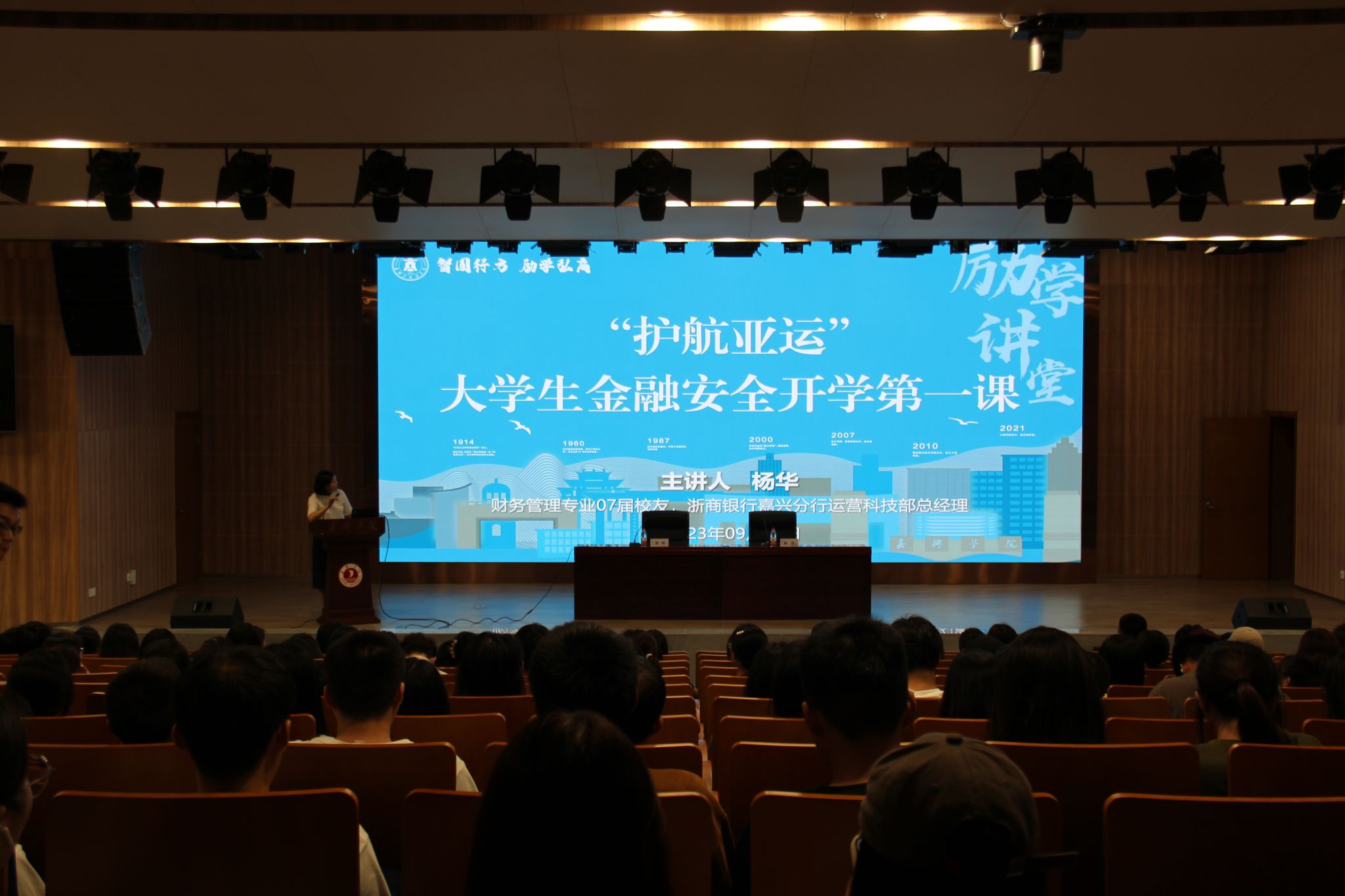 “励学讲堂”,作题为“‘护航亚运’,大学生金融安全第一课”专题讲座。学院党委副书记潘欣主持,学院师生230余人到会聆听报告。