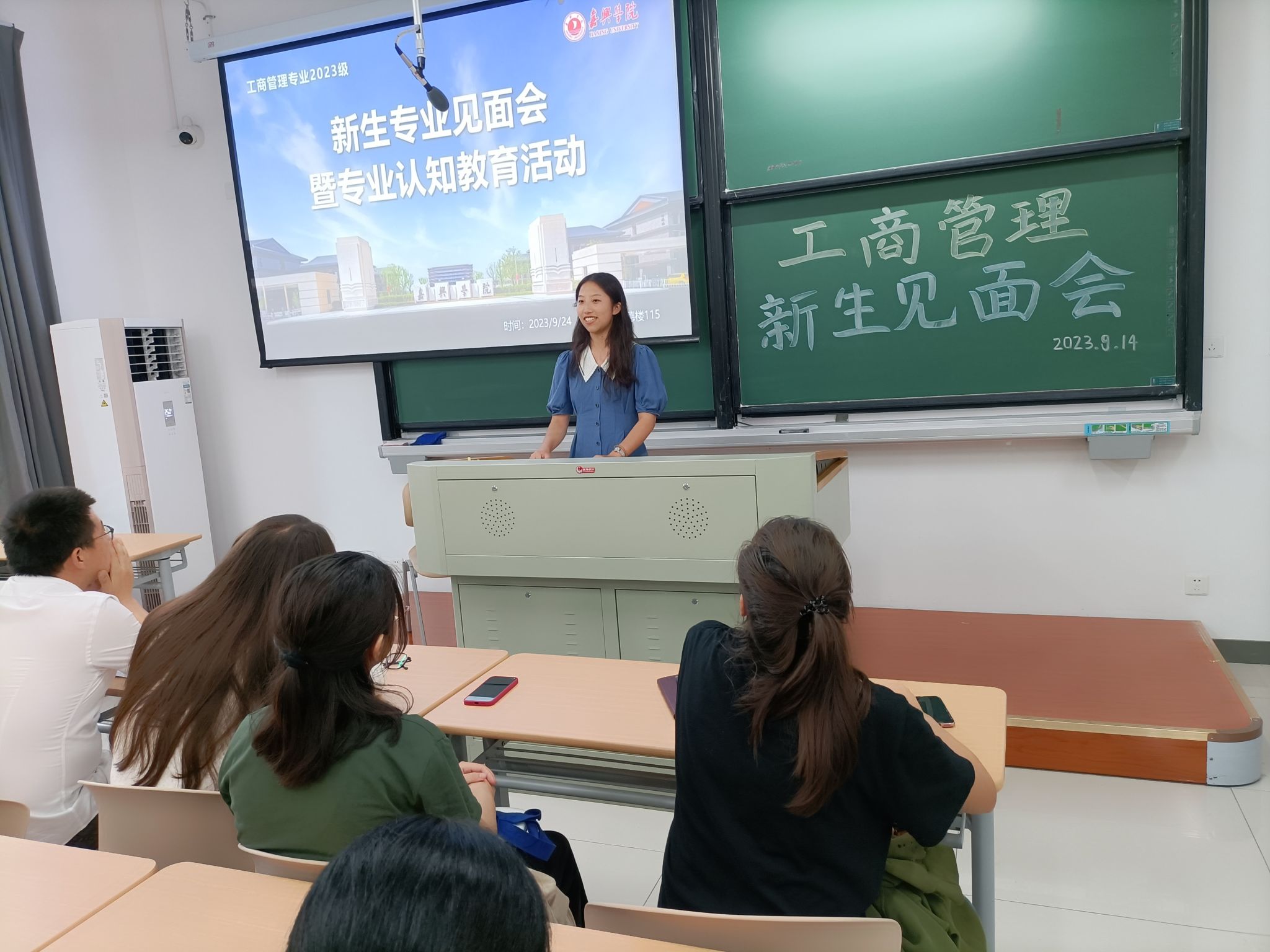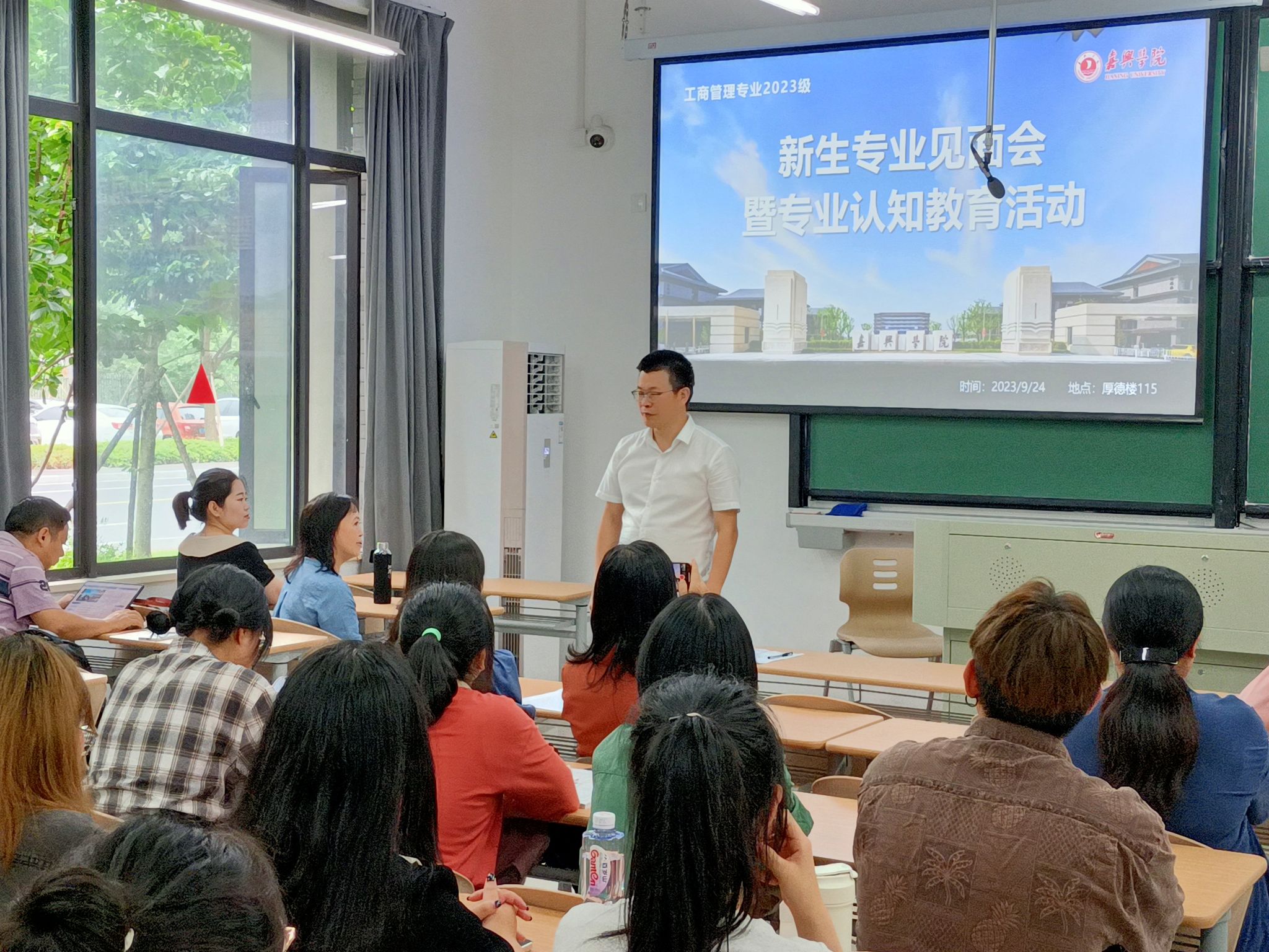 工商管理专业2023级新生专业见面会暨专业认知教育活动在厚德楼115顺利举行。系主任、专业教师、辅导员、助理辅导员和23级全体新生参加了本次活动。会议由工商231新生班助金舒怡主持。