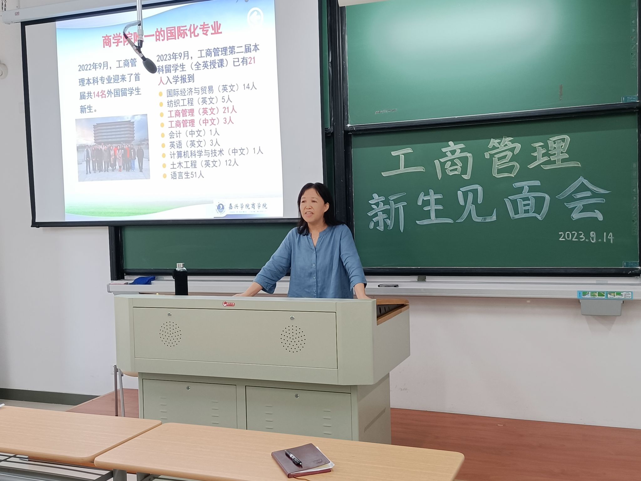 会议第二项议程,唐雯教授充分讲解了工商管理的专业详情。从专业发展史、学生生源、学生培养目标、师资力量等几大方面,详细介绍了工商专业的特点与优势。同时,向新生们展示了就业数据和考研录取情况,鼓励新生们在专业领域有所造诣。最后,唐教授对新生提出了几点要求,给予新生鼓励和厚望。