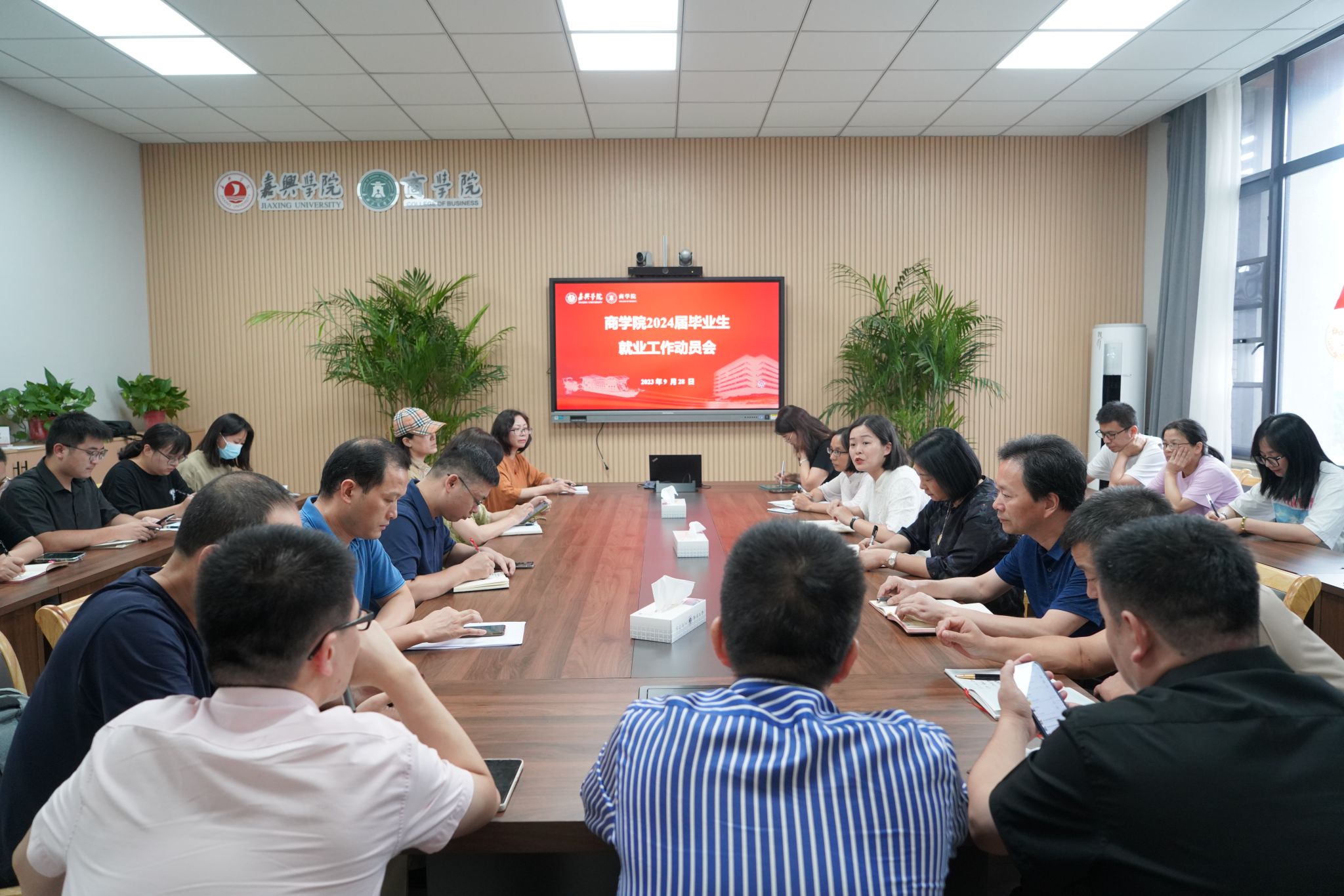 在尚德楼345会议室召开2024届毕业生就业工作动员大会,学院院长潘煜双、副院长李郁明、党委副书记潘欣出席会议,各专业系主任、各专业辅导员、2024届毕业班全体班主任参加本次会议。会议由潘欣主持。