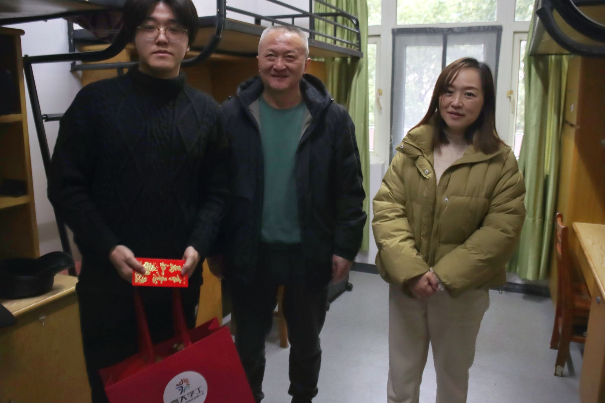 寒假留校学生,为同学们送上新年祝福及慰问大礼包。