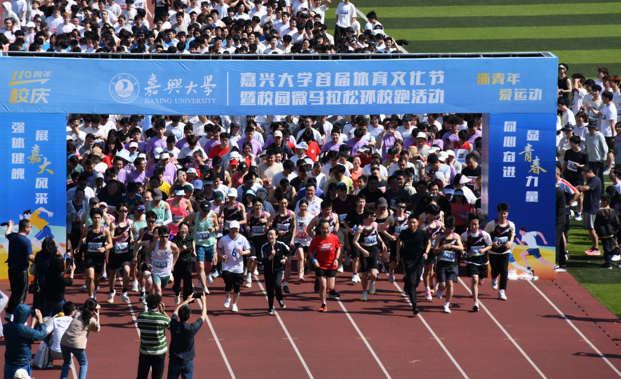 首届体育文化节启动仪式暨校园微马拉松环校跑在梁林校区西田径场举办,来自吃瓜网