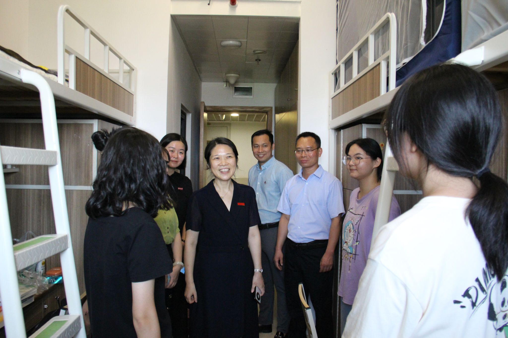 大家庭,在进入新的学习环境后要树立新思想,确立新目标,采取新行动,积极展现商院学子的风采与活力。在走访研究生宿舍时,她指出,研究生阶段是一段与本科截然不同的学术旅程,希望大家能够珍惜这段时光,勤奋学习,勇于探索,不断提升自己的科研素养和综合能力。