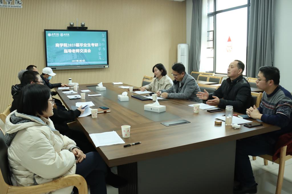 交流会上,各专业考研指导教师分析了各自指导学生的复习状态及辅导过程中发现的新情况。评估学生报考学校历年的上线情况和复试要求,各位老师各抒己见,根据自己的经验,分享考研复试辅导的思路、技巧。潘欣代表学院肯定并感谢了考研指导教师们的认真负责与无私付出,提出为进一步加强对学院2023届毕业生的考研指导,满足学生考研需求,也会提供精准化帮扶,全力帮助学生顺利上岸。
