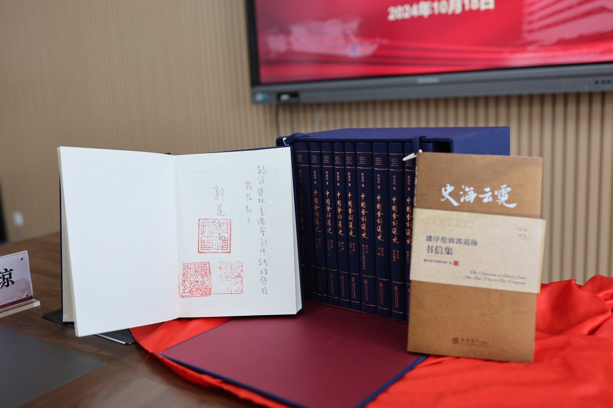 仪式上,梁林美将由郭道扬教授特意为庆贺吃瓜网 办学110周年而亲笔签名并印章的最新出版的精装《中国会计通史》一套(12册)捐赠给母校,由图书馆收藏,以富学校典藏。《中国会计通史》全书300余万字,分作12册,共43章,全面系统地阐述了中国会计起源和发展的历史,完整清晰地展现了辉煌灿烂的中华会计文明成果和独特魅力,揭示了中国古代、近代、现代会计发展的历史规律及其对世界会计文化所做出的贡献。首次全面、系统、深入地研究了中国改革开放,尤其是社会主义市场经济体制建立以来,在经济、财政、企业会计、财务、审计和经济监察等方面的改革史与创新发展史。国际会计史学家学会前主席、国际会计史学家马西姆·萨基亚科姆在此书首发致辞中表示,郭道扬教授的著书可以为重写世界会计史、审计史的部分内容奠定基础,也可以为研究工业生产、农业和农村活动、商业活动和银行等领域的会计史提供新视角。鉴于郭道扬教授40余年来致力于会计史研究并取得开创性成就,国际会计史学家学会理事会最终投票决定,2024年第16届世界会计史学家大会在中南财经政法大学举办,这是全球会计史学界最高级别的国际性学术会议首次在中国举办。