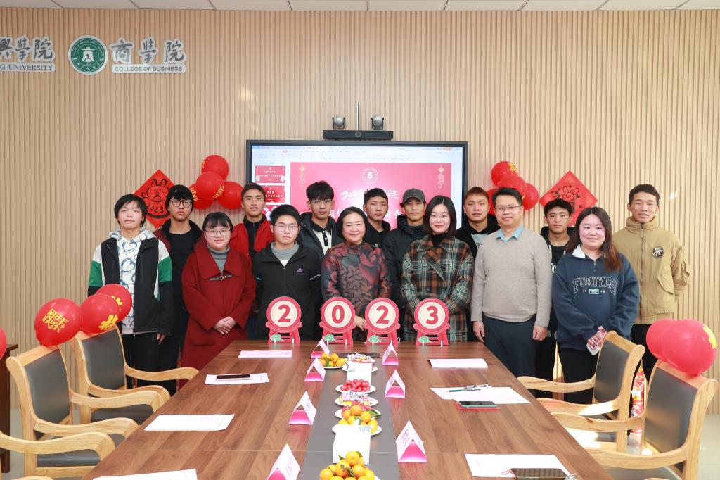 在尚德楼345会议室举行2023年寒假留校学生新春座谈会。学院院长潘煜双、党委副书记潘欣、相关专业辅导员代表以及全体留校学生欢聚一堂,共叙家常,喜迎新春。座谈会由潘欣主持。