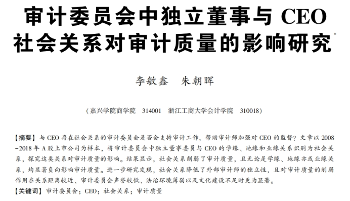 李敏鑫老师题为《审计委员会中独立董事与CEO社会关系对审计质量的影响研究》,聚焦于审计委员会中独立董事与CEO社会关系对审计质量的影响,通过实证研究揭示了社会关系对审计独立性和审计质量的作用机制。该研究为审计实践提供了新的视角和思考,对于提升审计质量和保护投资者利益具有重要意义。