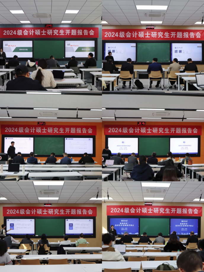 开题报告是保障研究生培养质量的关键环节。本次报告会的顺利完成,标志着2024级会计硕士研究生正式进入学位论文研究与撰写阶段,不仅系统检验了研究生们前期选题筹备成效,更为后续论文撰写指明了清晰路径,对强化研究生培养过程管理、保障论文质量、提升人才培养水平具有重要作用。