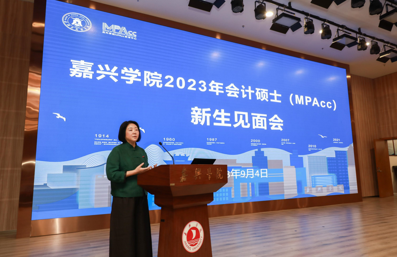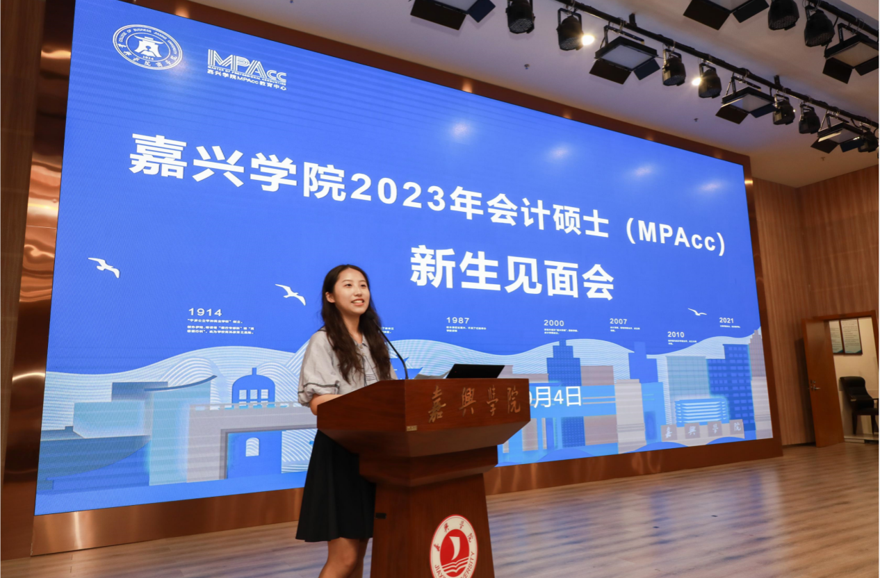 会计硕士231班陆蓓作为新生代表发言,她表示作为研究生新生要努力做有知识、有见识、有胆识的时代新人,在嘉院成就更卓越的自己,收获更精彩的人生。
