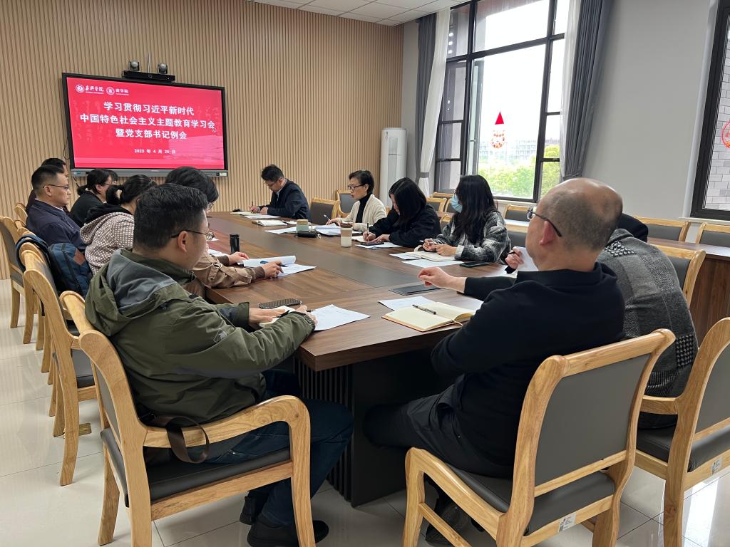 4月25日下午,学院在尚德楼345会议室召开学习贯彻习近平新时代中国特色社会主义思想主题教育工作推进会暨党支部书记工作例会,学院党委书记邵燕主持会议,党委副书记潘欣、教工和学生党支部书记参会。