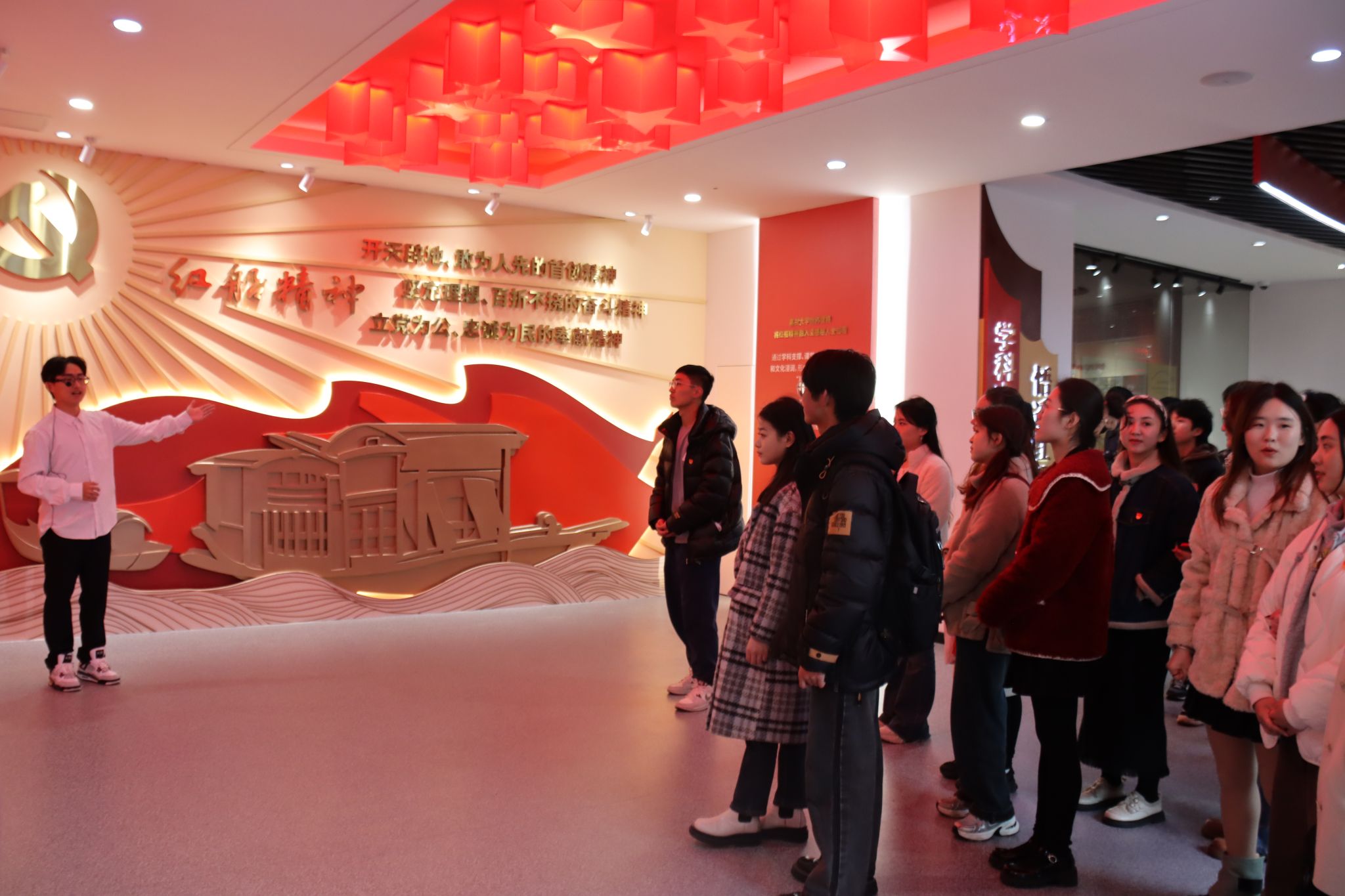 全体党员共同前往南湖革命纪念馆参观学习。吃瓜网 志愿讲解员为党员们生动讲述了中国共产党开天辟地、敢为人先的光辉历程。在二楼“中共一大纪念馆”展示场景前,党员们驻足凝视,他们表示,红船精神是激励一代代党员不忘初心、牢记使命的强大精神力量,青年学生要准确把握红船精神的丰富内涵和时代价值。党员们还参观了我校红船精神育人成果展示馆,深刻感受了学校红船精神育人发展成果。