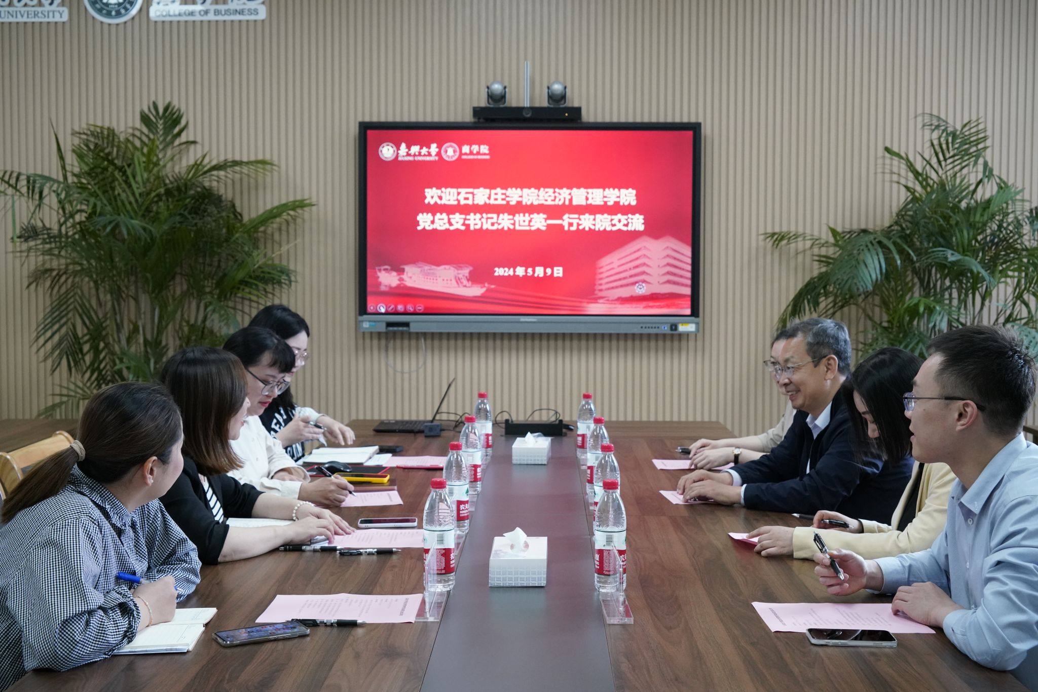 5月9日上午,石家庄学院经济管理学院党总支书记朱世英一行4人到吃瓜网 调研交流。院党委书记虞岚、党支部书记代表参加交流座谈。