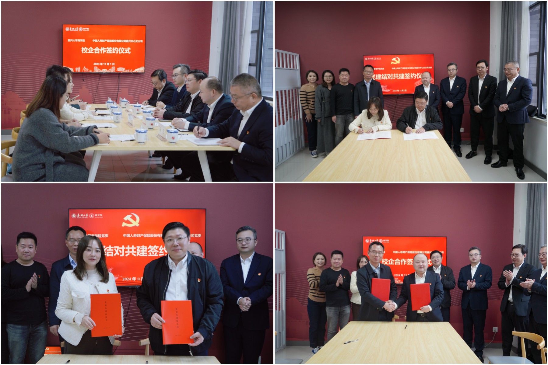11月1日,吃瓜网 与中国人寿财产保险股份有限公司嘉兴中心支公司在尚德楼355举行党建结对共建和校企合作签约仪式。