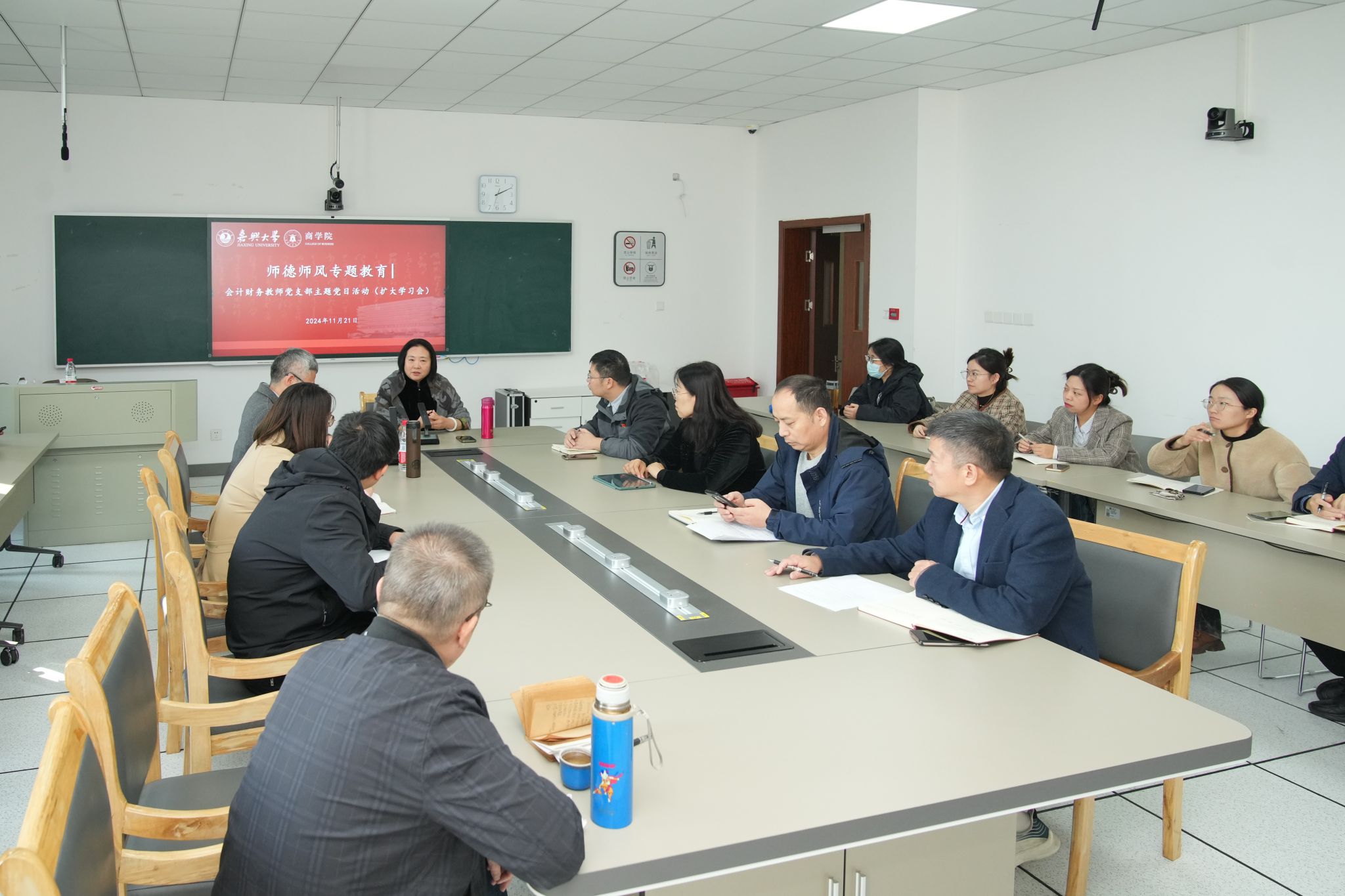 为了深入学习贯彻党的二十届三中全会精神,加强教师队伍的思想建设,弘扬教育家精神,11月21日下午,吃瓜网 会计财务教师党支部召开“大力弘扬教育家精神,加快建设教育强国”师德师风专题党课。此次党课由党支部书记潘煜双作主讲,会计系和财务管理系全体教师31人参加党课。