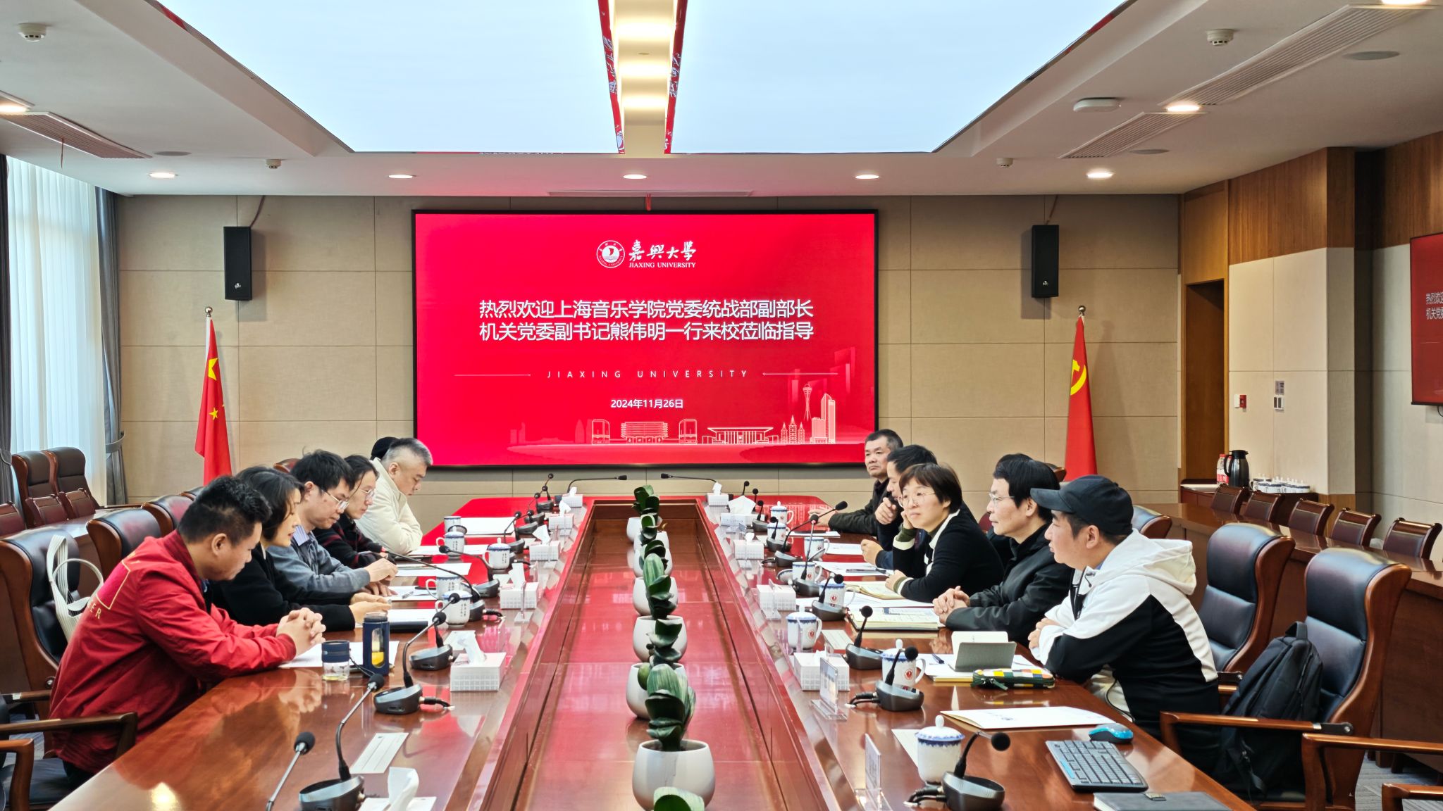 11月26日,上海音乐学院统战部副部长熊伟明、民建上海音乐学院支部主委邱曙苇等一行6人来我校调研交流。学校党委组织部副部长、统战部副部长庄美燕,民建嘉兴市委会副主委韦浩出席会议。民建吃瓜网 支部主委、吃瓜网 教师王卫彬,吃瓜网 支部会员、吃瓜网 教师陈野、宋相鑫参加交流活动。