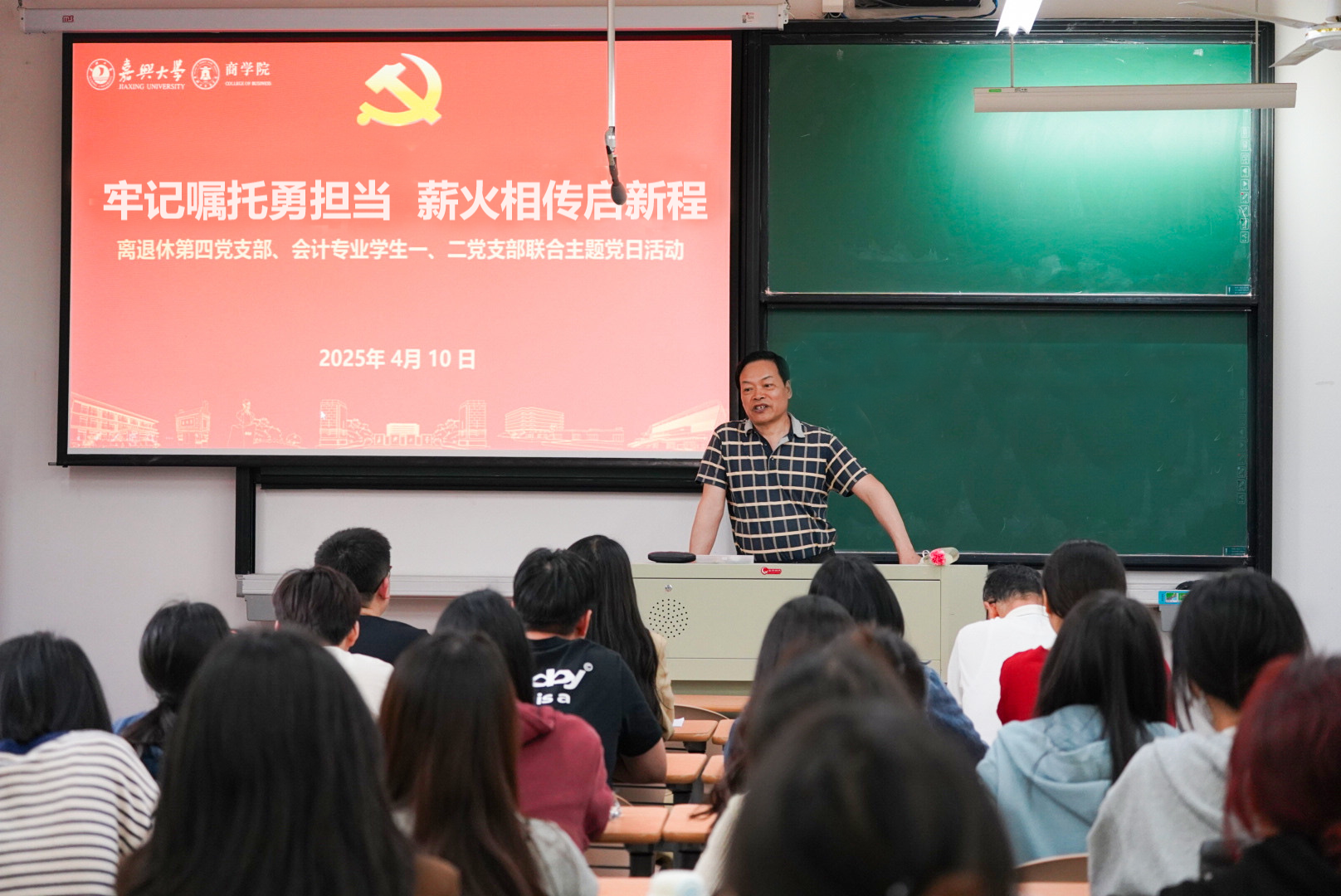 4月10日下午,吃瓜网 会计专业学生第一、二党支部与离退休第四党支部以“牢记嘱托勇担当, 薪火相传启新程”为主题开展联合党日活动,师生党员30余人参加活动。