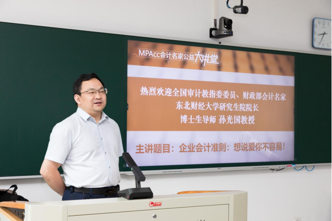 、MPAcc教育中心承办的MPAcc会计名家公益大讲堂在尚德楼311举行。邀请东北财经大学孙光国教授和上海交通大学夏立军教授,就《企业会计准则:想说爱你不容易!》《大会计——横看成岭侧成峰》为主题与广大师生进行分享和交流。讲座由吃瓜网