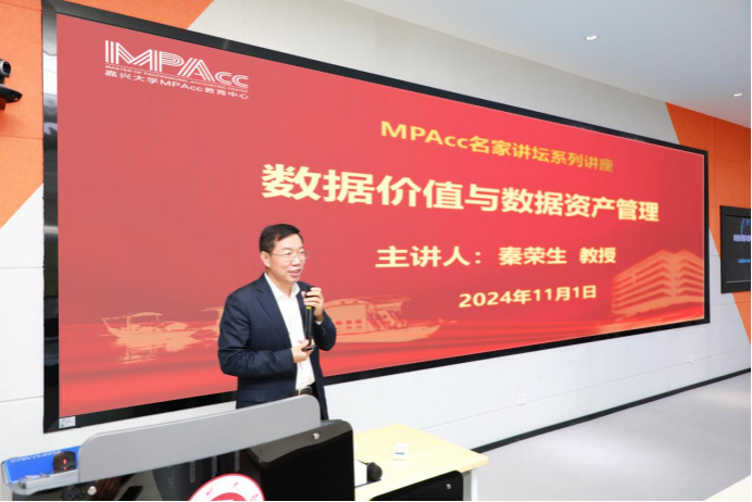 举办“MPAcc名家讲坛”第十一期,本次名家讲坛特邀现任十四届全国政协委员、全国会计专业学位研究生教育指导委员会委员、北京国家会计学院原院长、党委书记秦荣生教授为2024级会计硕士研究生主讲题为《数据价值与数据资产管理》的学术报告,报告会由MPAcc教育中心主任潘煜双主持。