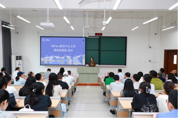 MPAcc教育中心主任潘煜双教授祝贺新生来到嘉大开启研究生生活,介绍了嘉大悠久的历史、深厚的学科底蕴和良好的教风学风,并指出研究生阶段不仅是知识积累的过程,更是个人品德修养提升的关键时期,鼓励新生积极参与导师教学科研,建立良好的导学关系,要诚信为人、踏实为学,珍惜校园时光,终身成长。在新的征程中,以饱满的热情和昂扬的斗志,书写属于自己的辉煌篇章。